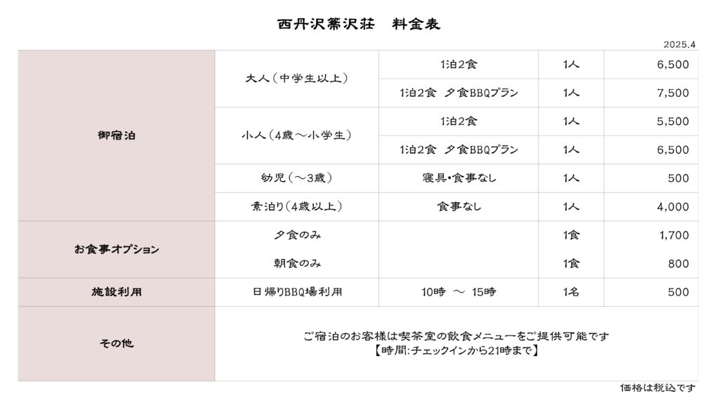 西丹沢箒沢荘 施設案内2025